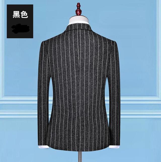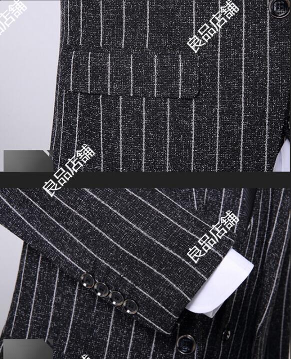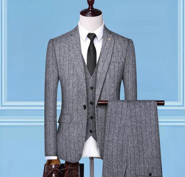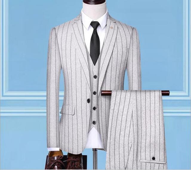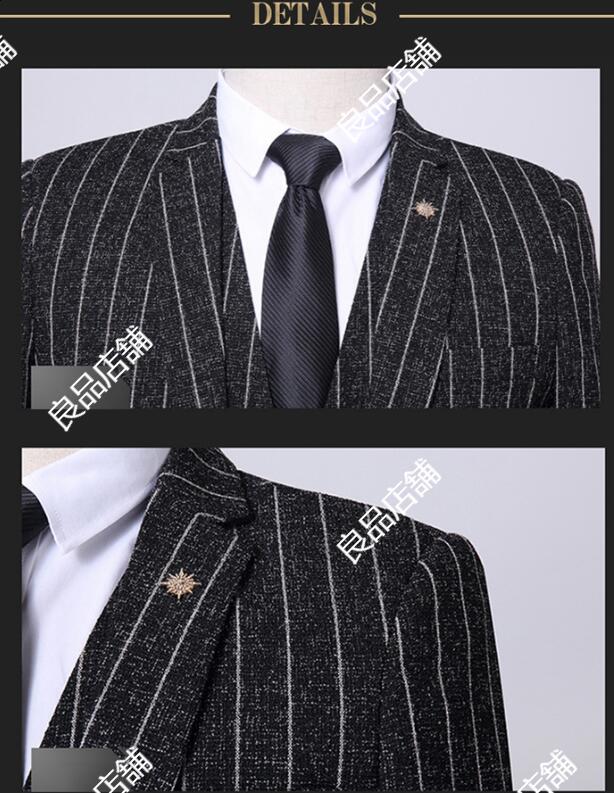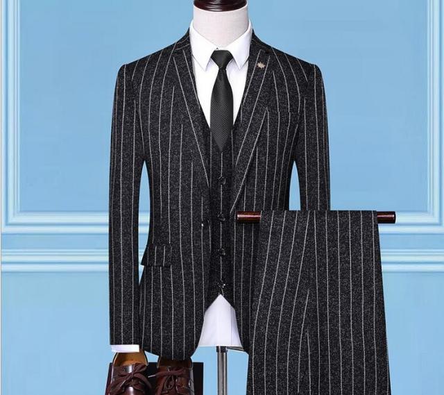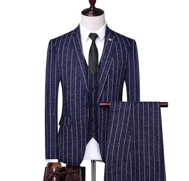 メンズスーツ 3ピーススーツ スリムストライプスーツ 紳士用 OL 大きいサイズ タキシードジャケット+ベスト+パンツ 一つボダンスーツ 4色M〜4XL