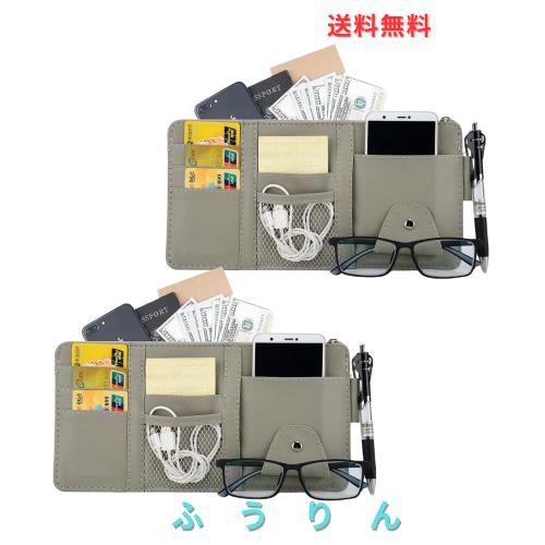 TIMYU 車 収納 サンバイザーポケット PU レザー 車用収納バッグ 多機能ポケット 収納ホルダー 取付簡単 スマホ サングラス カード ケーブ