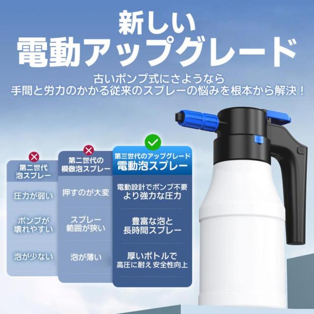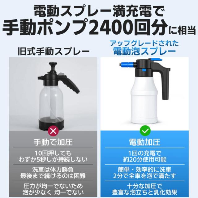 洗車 泡 フォーム ガン スプレー ハンディ クリーナー ウォッシュ 泡 自動 電動 充電式 コードレス もこもこ プロ 1.5L