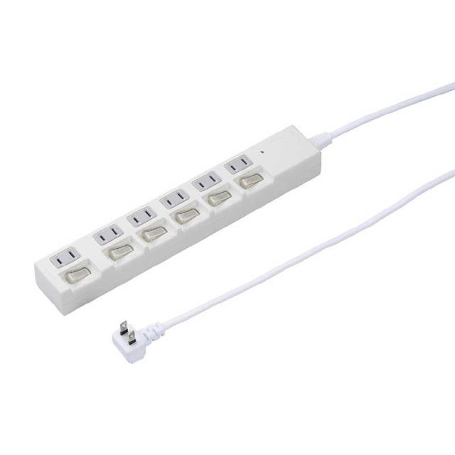 ヤザワ 雷ガード付6個口節電タップ3m ホワイト 最大サージ電圧 6000V [3.0m / 6個口 / スイッチ付き(個別)] H4BKS663WH
