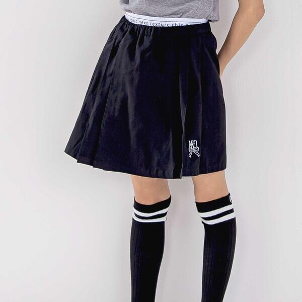 ブラック:ツイル素材で裾にはシルバーリボン・ホワイトロゴ刺しゅうがON。