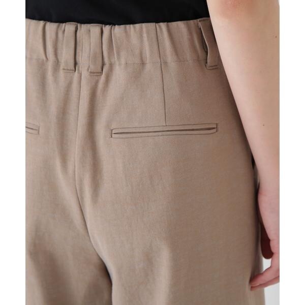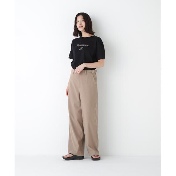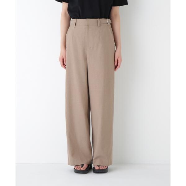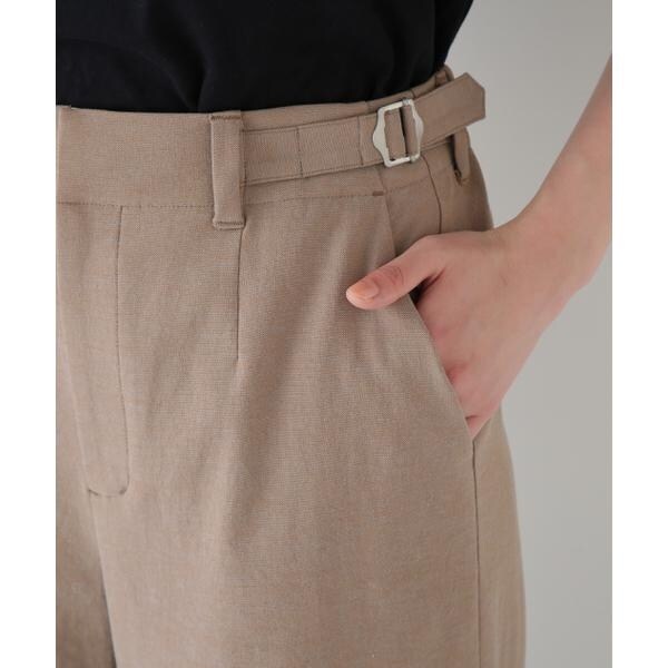ウエストすっきり続きベルト仕様のセミワイドパンツです。脇のサイズアジャストミニベルトがポイントです。