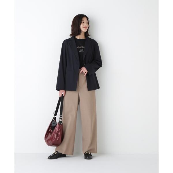 ベーシックカラーのシンプルなデザインなので、トップスを選ばない万能パンツです。Tシャツやスウェットを合わせたカジュアルスタイルから、ブラウスやジャケットを合わせてきちんとしたスタイルまでオンオフで活躍する一着です。