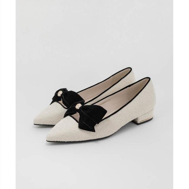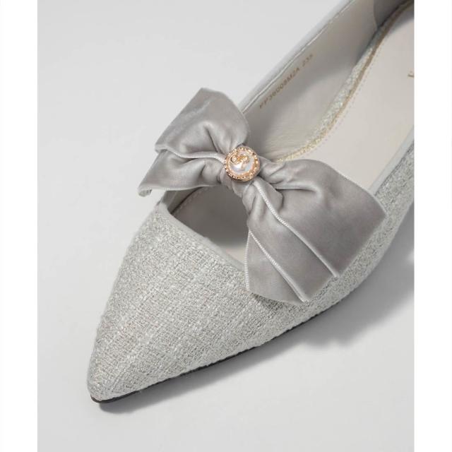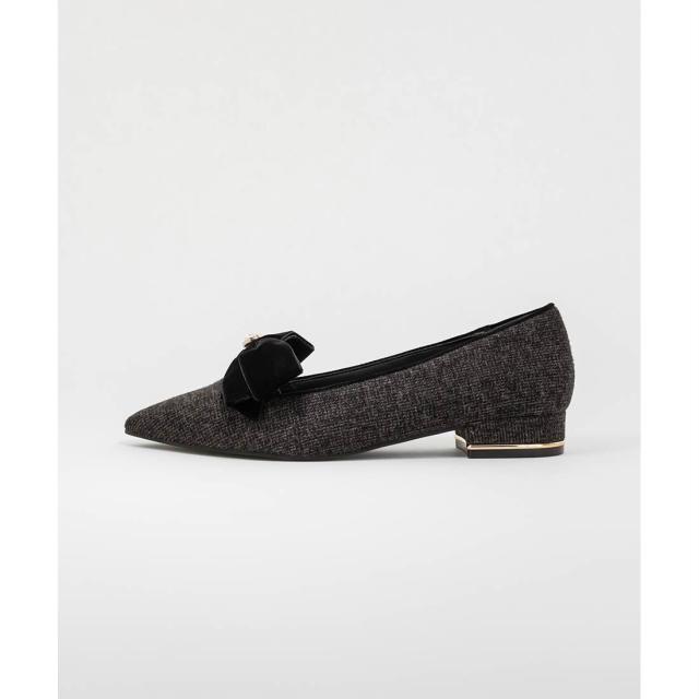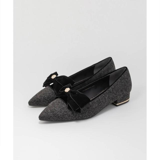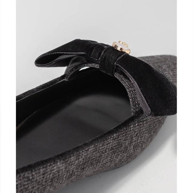 【22−25.5】ベロアリボンクラシカルフラットパンプス