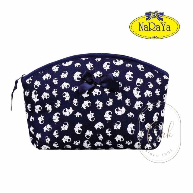 ナラヤ NARAYA 自宅で洗える 化粧ポーチ 大容量タイプ・ネイビーエレファント NB-87/S 洗える コットン製 ファスナー付き 小物入れ メイクポーチ トラベルポーチ 軽量 おしゃれ かわいい リボンバッグ タイ製 レディース 人気 コスメ収納 旅行用 ギフト プレゼント