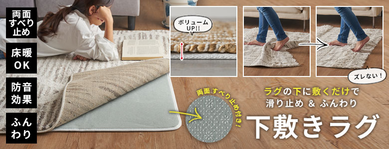 ラグの下に敷くだけで、滑り止め&ふんわりになる「下敷きラグ」はこちら >