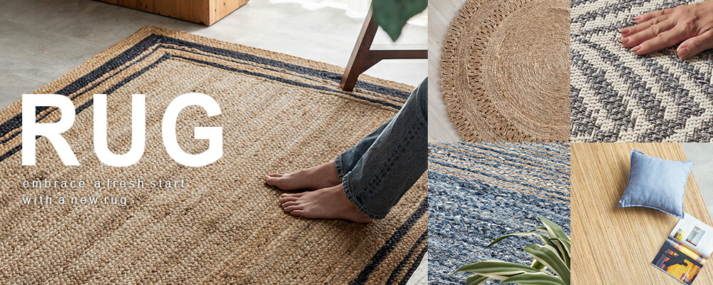 自然素材を多く取り入れるコースタルインテリアの落ち着いた雰囲気を損なわず、さりげない個性が光るデザインラグが新しいエッセンスを加えます。