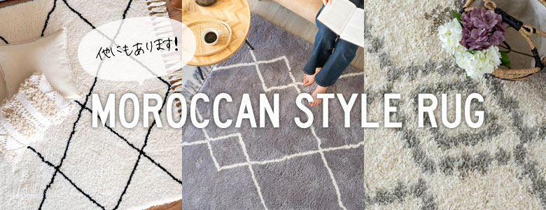 明るい色調でまとめられたモロッカンスタイルとラグの明るいベースカラーがマッチし、ナチュラルな雰囲気を漂わせます。