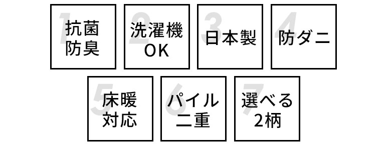 防ダニ・抗菌防臭加工、ウォッシャブル、ホットカーペット・床暖房対応