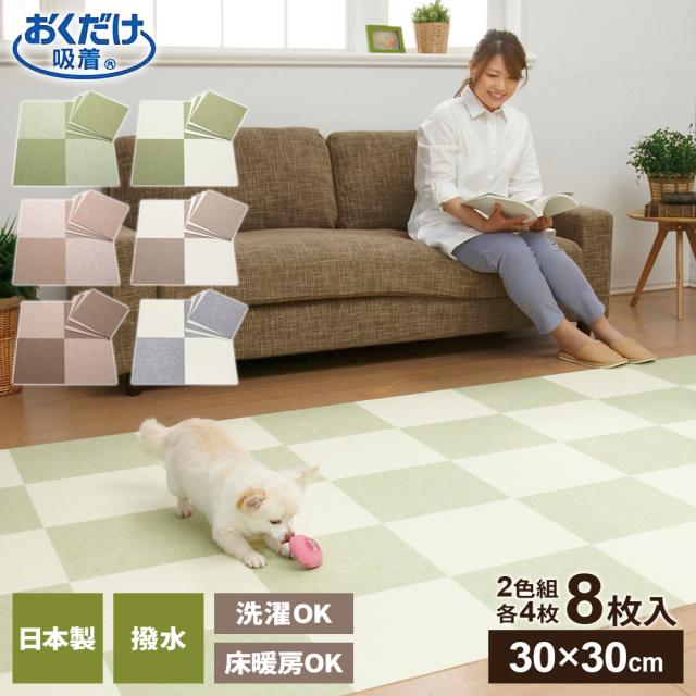 タイルカーペット おくだけ吸着 バリアフリータイルマット 30×30cm 8枚入 | 吸着 マット 洗える 床暖OK 日本製 ロボット掃除機 フローリング タイルマット 高齢者 キッズスペース 猫 犬 滑り止め 撥水 ずれない マンション 廊下