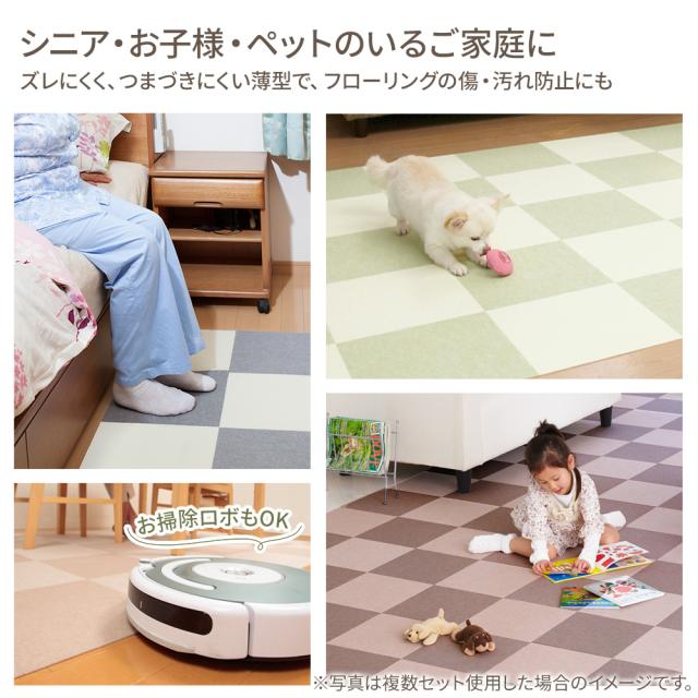 国産 市松模様 カーペット キズ予防 汚れ防止 キズ防止 つまづきにくい シニア 介護 保温 薄型 フリーカット 簡単取り外し 掃除ロボOK 撥水加工 洗濯機OK 組み合わせ自由 タイル型 床暖房対応 丸洗いOK バリアフリー シート フロア キッズスペース ペット 掃除機OK サッと拭き取り 絨毯 角型 スクエア カットフリー シンプル 使いやすい おすすめ 便利 デザイン インテリア ナチュラル ピッタリ キッチン 台所 玄関 リビング 寝室 子供部屋 トイレ 洗面所 脱衣所 子供部屋 8枚入り4973381163120