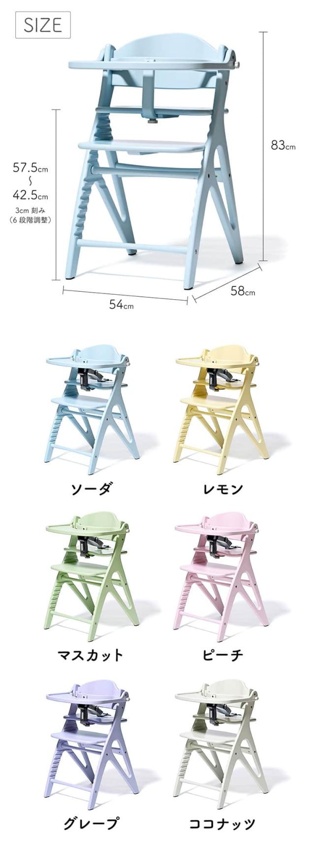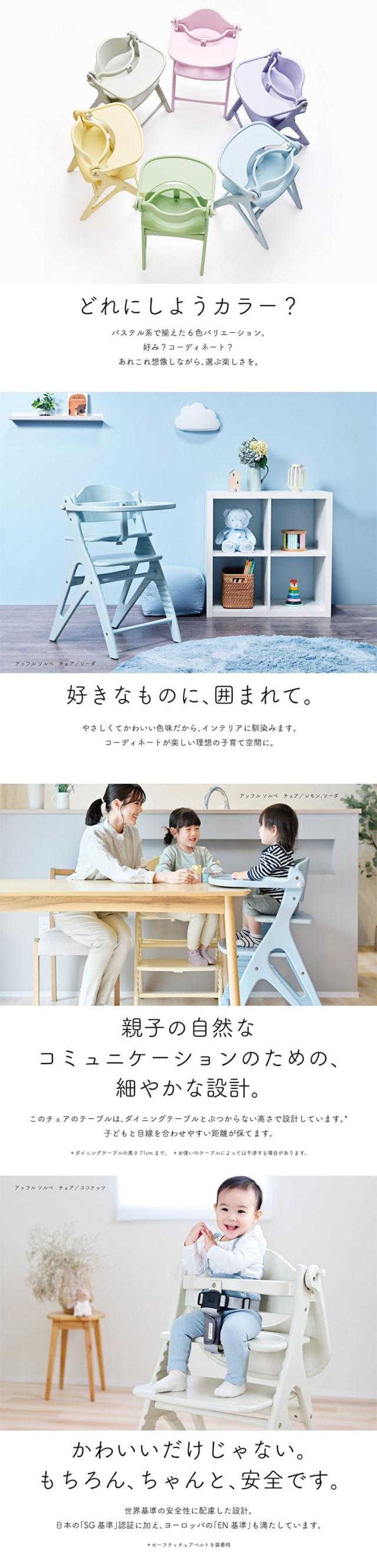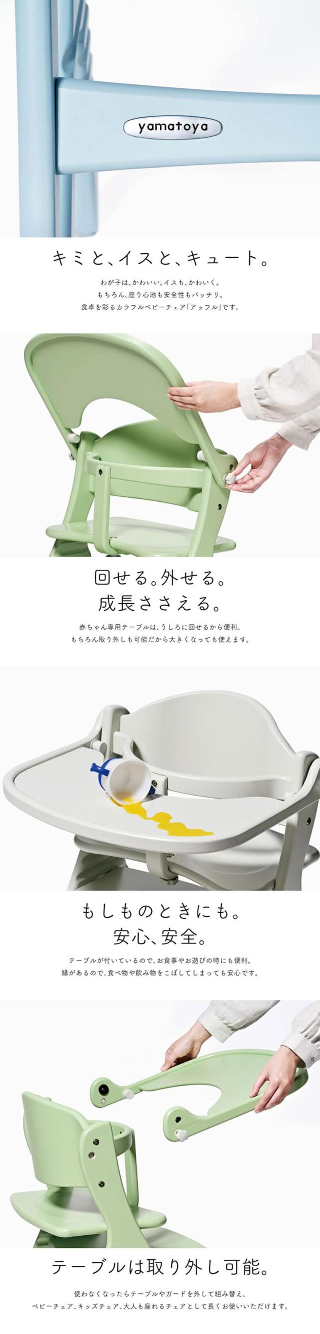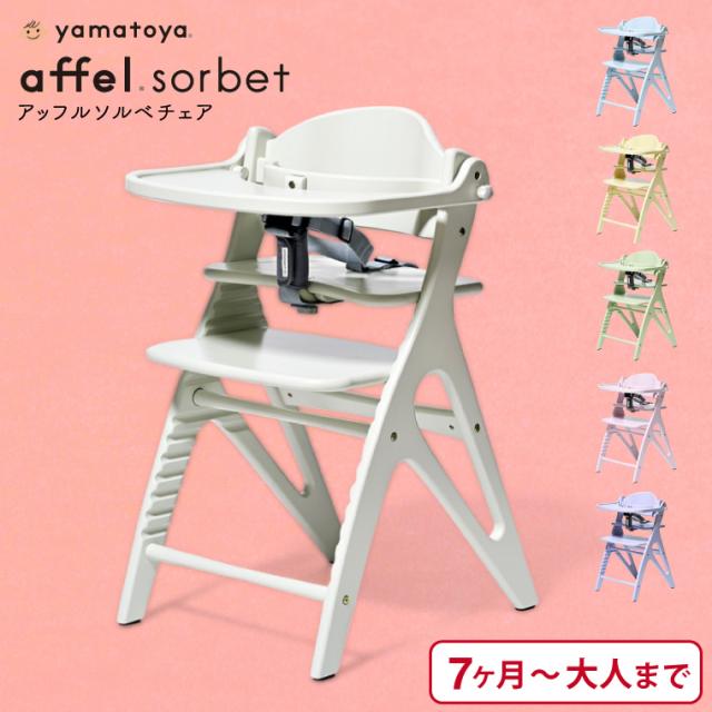 yamatoya認定店 大和屋 アッフル ソルベ チェア (送料無料)/ ベビーチェア キッズチェア 安全ベルト・テーブル付 かわいい おしゃれ 木製ハイチェア パステルカラー 高さ調節 椅子 木製 ベビー用品