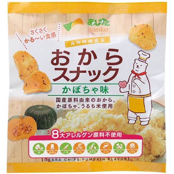 【関連ワード】おからスナック,おからチップス,大豆スナック,野菜スナック,かぼちゃスナック,お菓子,国産おから,国産大豆,国産かぼちゃ,国産うるち米,無添加おやつ,自然派おやつ,健康おやつ,食物繊維,サクサク食感,軽い食感,揚げ菓子,ほんのり甘い,やさしい味,子供のおやつ,ギルトフリースナック,からだにやさしい,粗糖使用,黒ごま入り,コーンスターチ,馬鈴薯でん粉,株式会社サンコー