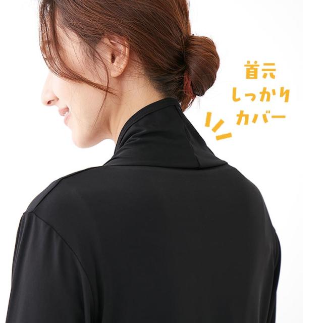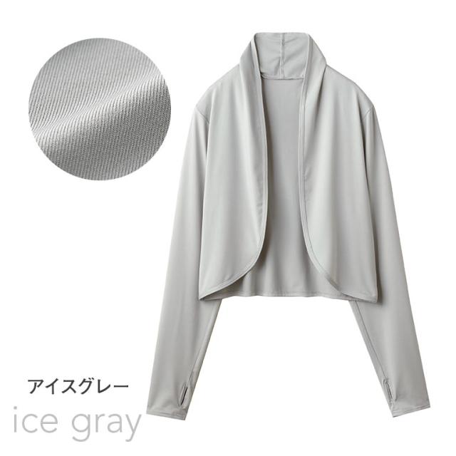 首筋から手の甲までカバーできるUVカットボレロ。接触冷感&吸水速乾素材で快適。外出時はもちろん、室内の冷房対策にも。しわになりにくく、持ち運びにも便利。
