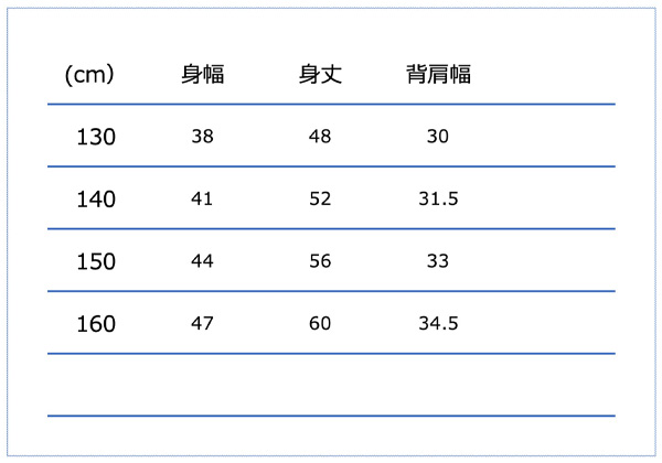 サイズ:身長 / 胸囲 / ウエスト