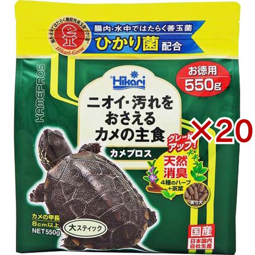 甲羅の成長に必要なカルシウムとその吸収を助けるビタミンD3を強化配合。カメが必要とする栄養分を全て含んでいますので、カメプロスだけで飼育できます。