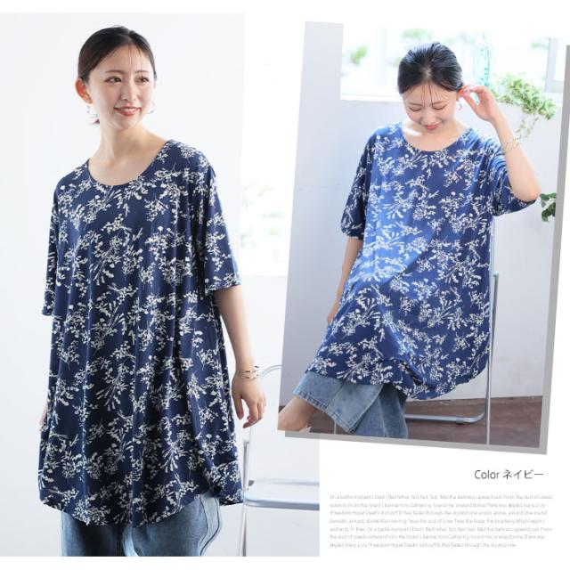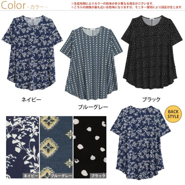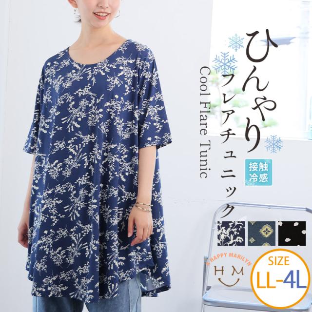 新作 大きいサイズ レディース チュニック | ひんやり プリント柄 フレア カットソー チュニック [861828] LL 3L 4L