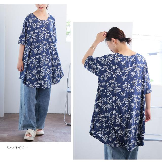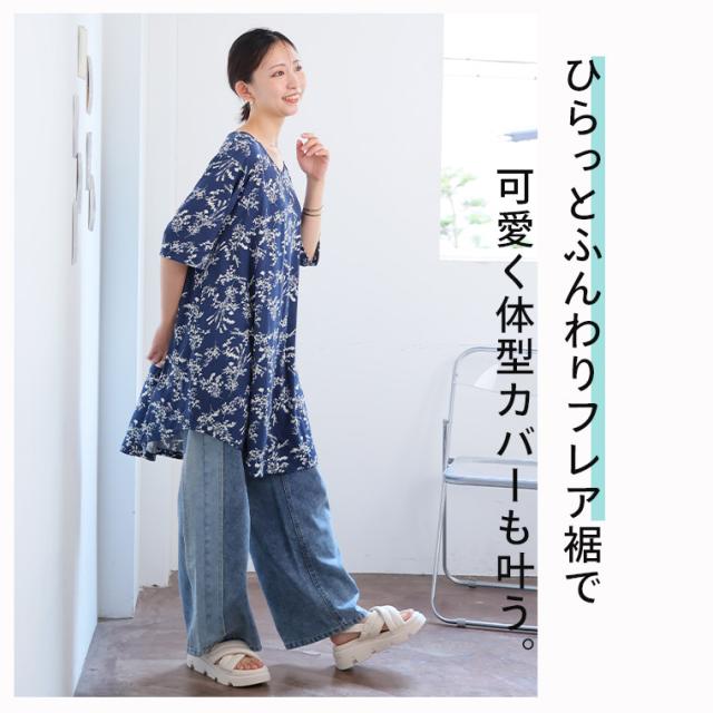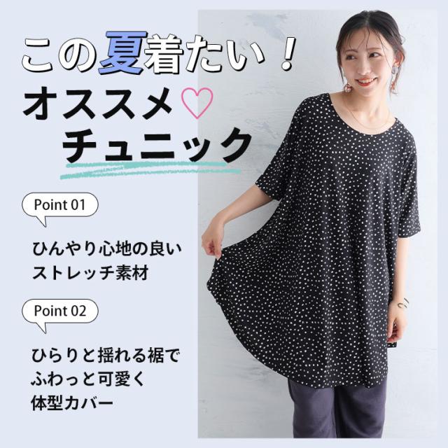 ひんやり心地良い プリント柄フレアカットソーチュニック