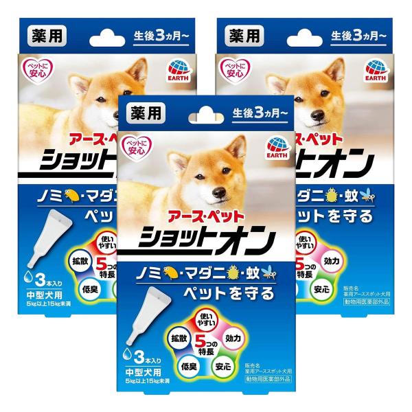 アース・ペット 薬用ショットオン 中型犬用 1.6g 3本入×3個セット メール便送料無料