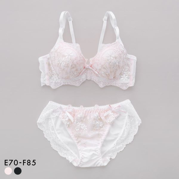 250708 3/4カップブラジャー ブラセット ブラジャーセット ブラショーツセット ブラ&ショーツセット ブラジャー&ショーツ 上下セット 下着セット フルバック パンツ 女性用 脇高ブラ 脇すっきり かわいい 可愛い 安い プチプラ コスパ 刺繍柄