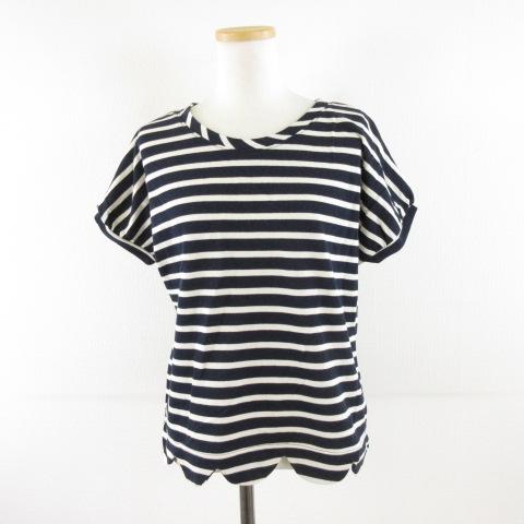 【中古】GRASS PLUS NOTE カットソー ボーダー フレンチスリーブ 紺 白 L *A275 レディース