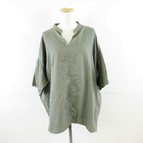 【中古】アメリカンホリック AMERICAN HOLIC スキッパーシャツ チュニック 七分袖 カーキ 緑 L *A296 レディース