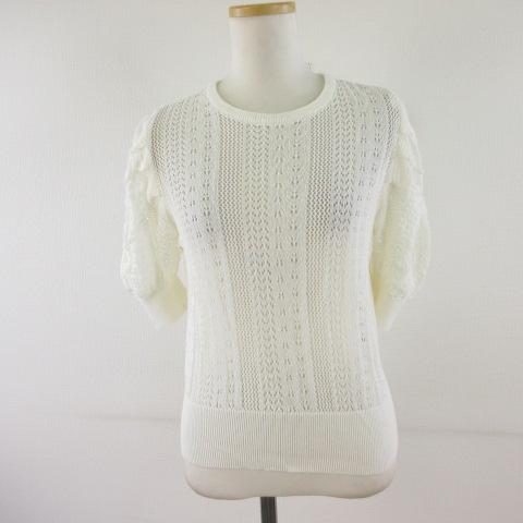 【中古】未使用品 armonia 透かし柄ニットプルオーバー 五分袖 オフホワイト 白 F *T465 レディース