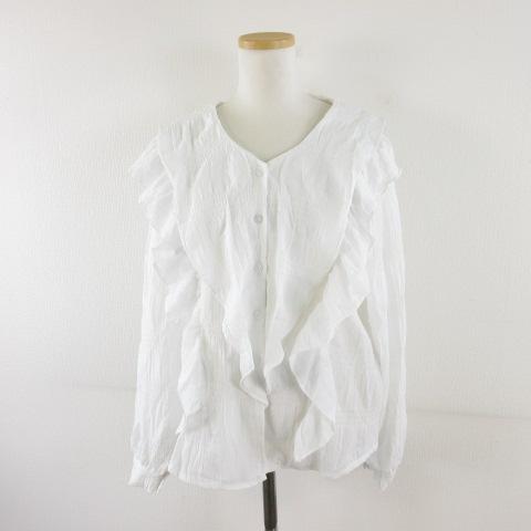 【中古】グレイル GRL Vネックフリルラッフルブラウス 長袖 白 M *A302 レディース