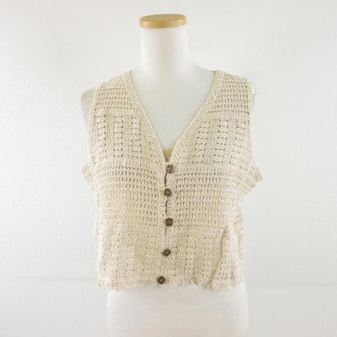 【中古】未使用品 p.o.t ニットベスト ショート丈 ベージュ M *A303 レディース