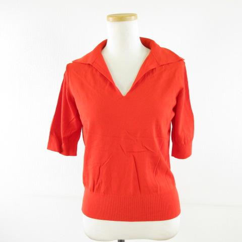 【中古】ラナン Ranan スキッパーニット カットソー 半袖 オレンジ M *A307 レディース
