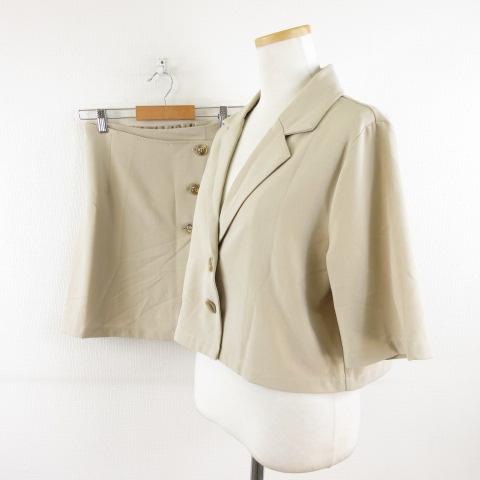 【中古】アーベーセーアンフェイス abc une face セットアップ テーラードシャツ 半袖 ミニスカート ベージュ F