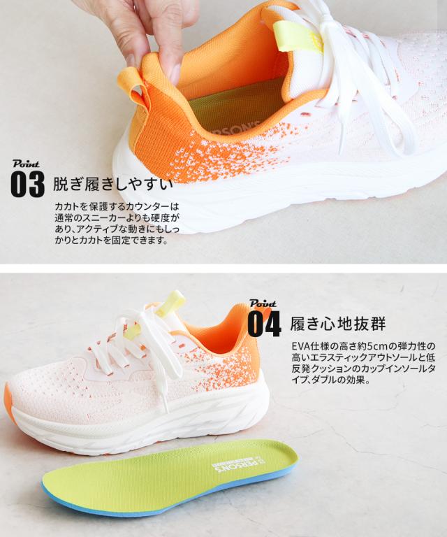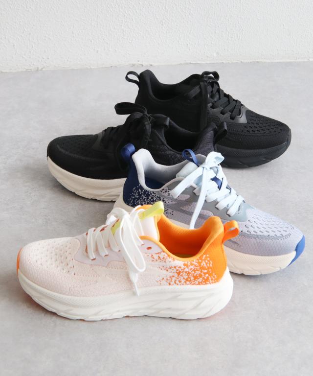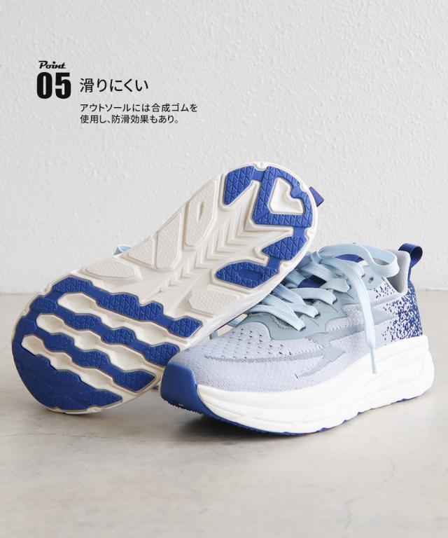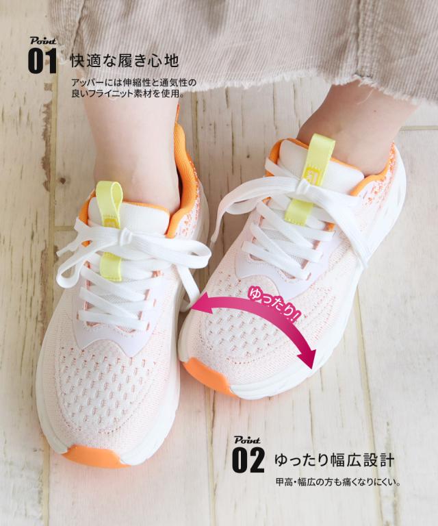 1.アッパーには伸縮性と通気性の良いフライニット素材を使用し快適な履き心地。