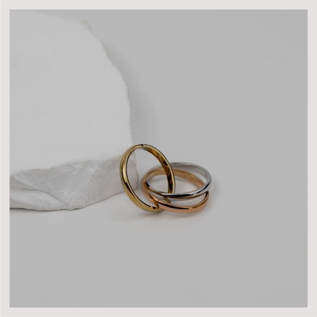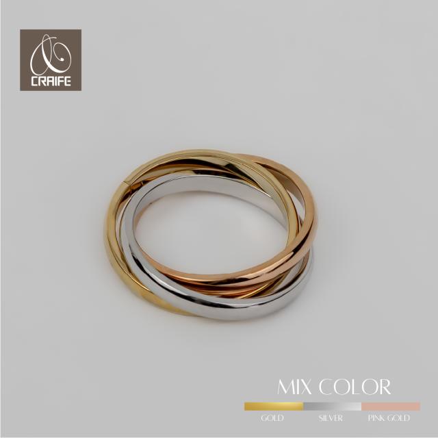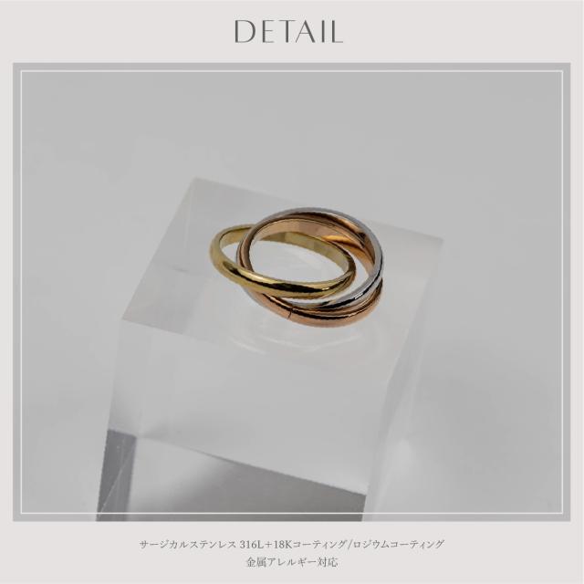 サージカルステンレス リング 指輪 トリニティ 金属アレルギー対応 18Kコーティング 11号 14号 16号 18号 レディース 大人 シンプル レディース ミックス ゴールド シルバー ピンクゴールド 送料無料 プチプライス高見え CRAIFE