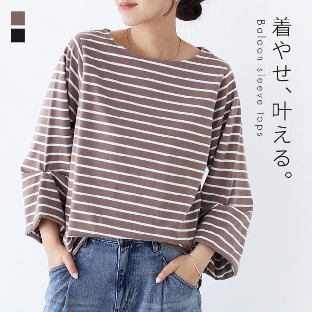 カットソー レディース トップス 7分袖 バルーンスリーブ ボートネック ミドル丈 ボーダー 春 夏 オシャレウォーカー 【TP】 Tシャツ プルオーバー ホワイト 白 オフホワイト 五分袖 七分袖 バルーン袖 ボリューム袖 ミディ丈 バルーン スリット 後ろ下がり ボーダー柄 配色 おうちで洗える 秋 カジュアル シンプル ナチュラル モード キレカジ 可愛い系 大人女子 大人可愛い お洒落可愛い 大人カジュアル 上品 きれいめ ベーシック ニュアンス ラフ ゆったり ゆる 楽ちん 二の腕カバー Sサイズ Mサイズ Lサイズ LLサイズ 3Lサイズ XLサイズ ぽっちゃり 体型カバー 大きいサイズ プラスサイズ 10代 20代 30代 40代 50代 60代 低身長 高身長 女子会 オフィス 通勤 通学 お買い物 お出掛け 旅行 リゾート おしゃれ お洒落 トレンド 流行 osharewalker グレージュ ブラック 黒[ID]12to0hd