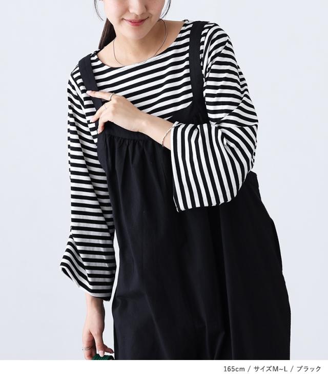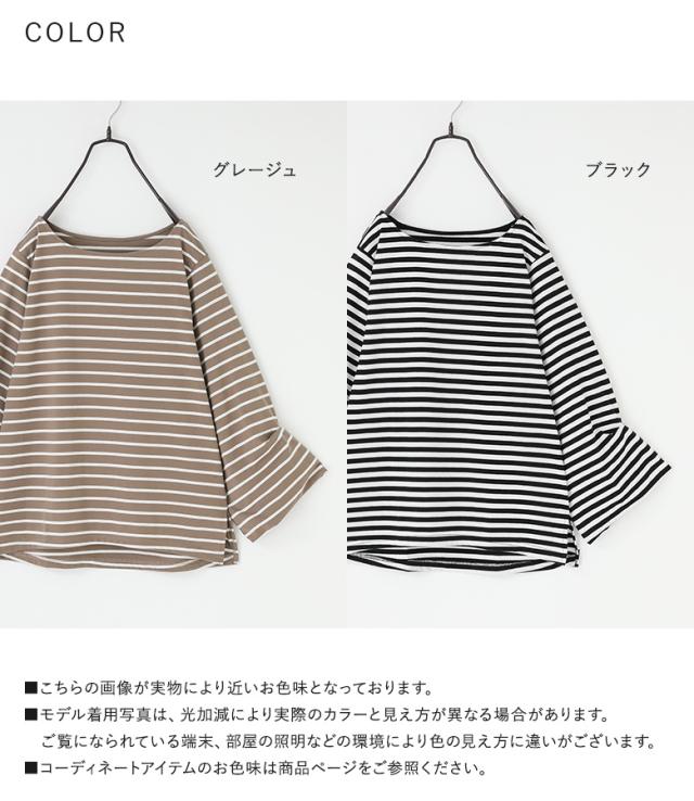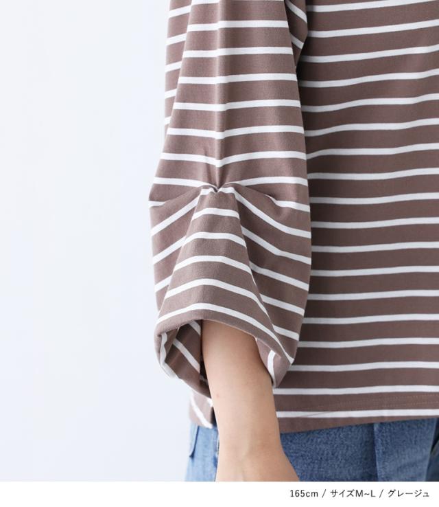 『ハングバルーンスリーブ七分袖ボーダーカットソー』※メール便可※【10】[カットソー レディース トップス 7分袖 バルーンスリーブ ボートネック ミドル丈 ボーダー 春 夏 オシャレウォーカー]