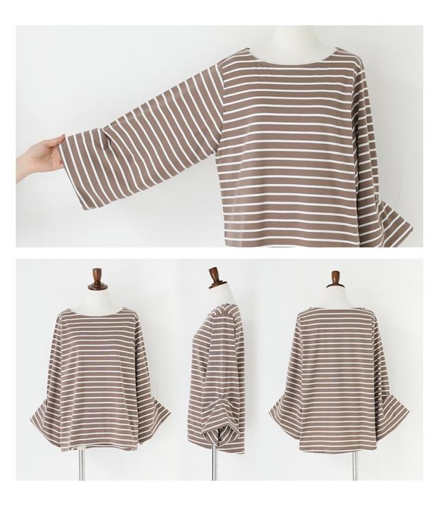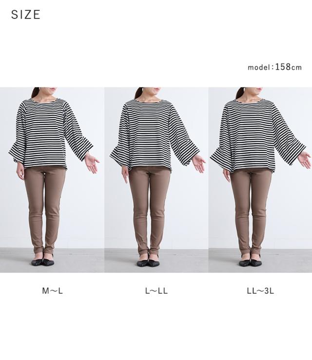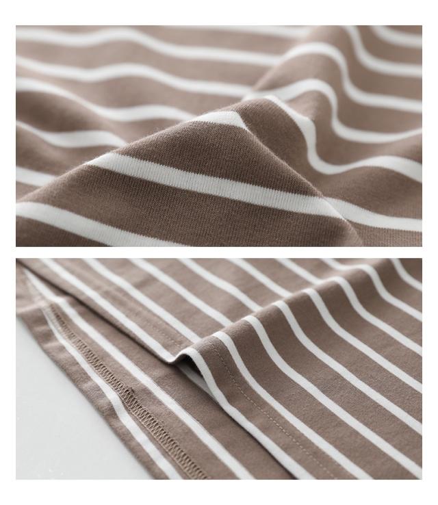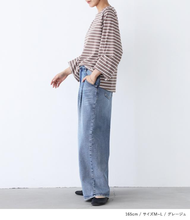 ■デザイン 大人カジュアルな雰囲気に仕上がる七分袖カットソー。カジュアルながらもどこか女性らしさが漂い、ラフになりすぎないボーダー柄です。気になる二の腕をカバーしながら絶妙な抜け感のあるバルーンスリーブデザインのトップス。 ■コーディネート デニムなどのパンツ、スカート合わせはもちろん、サロペットのインナーにも合わせて大人カジュアルに着用いただけます。 ■素材 素材にはサラりとした柔らかな肌触りの生地を使用。暑い季節にも心地よく着用いただけます。 |