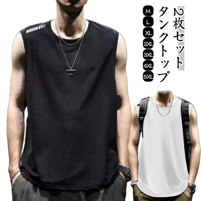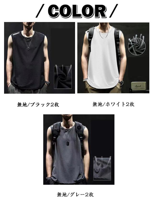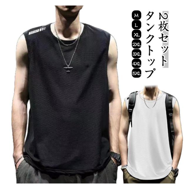 メンズ 冷感 大きいしアズ インナーシャツ 袖なしtシャツ クルーネック 肌着 2枚セット Tシャツ メンズ 薄手 涼しい 通気 トップス カジュアル 男性 無地 シンプル おしゃれ 2枚組 大人 ノースリーブ 運動着 スポーツウェア