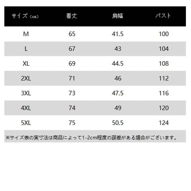 | サイズ | M L XL 2XL 3XL 4XL 5XL |