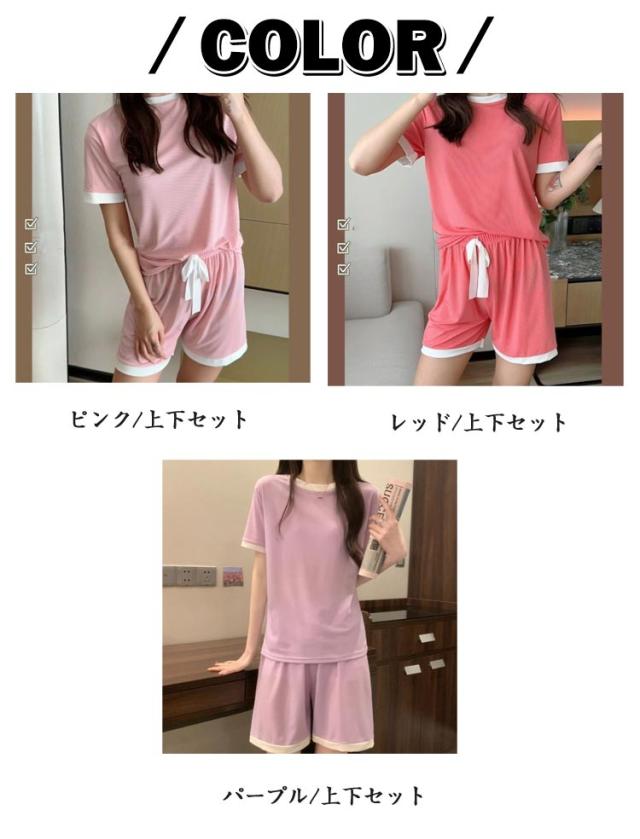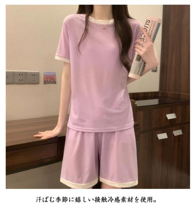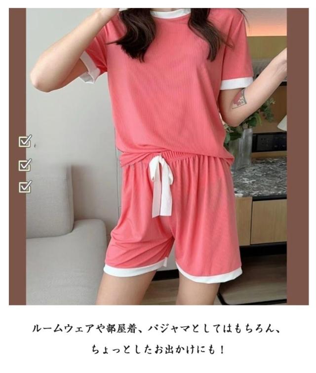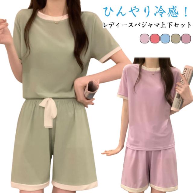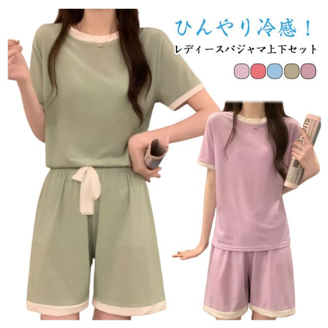 ひんやり パジャマ 通気性 接触冷感 上下セット 半袖tシャツ 上下セット ショートパンツ ルームウェア 冷感 2点セット レディース 体型カバー ルームウェア 寝間着 部屋着 半袖 春 涼しい 快適 ひんやり 夏 秋 大きいサイズ リラックスウェア 無地 シンプル
