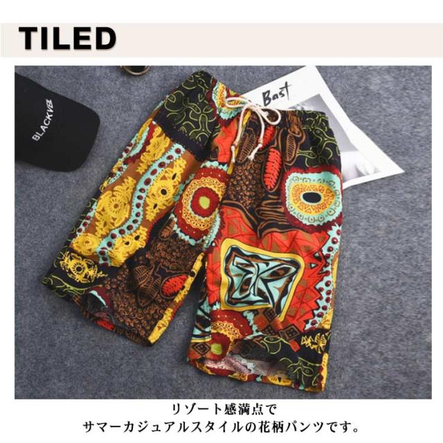 | 今シーズンのマストバイアイテム★ リゾート感満点でサマーカジュアルスタイルの花柄パンツです。 サーフパンツはゆったりした着用感、着心地が快適!ゴム入りと紐が付き調節可能ウエスト、フィットを高めて、脱着しやすくて動きにも便利だ! さらに公園やルームウェアなどの普段使いでも履けできます。普段履き、街履きにも対応できます。 シンプルなトップスでもオシャレ感を出してくれるので真夏には特に重宝する。 夏コーデを盛り上げる主役級ボトムス。 | |