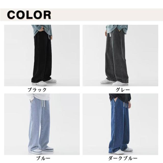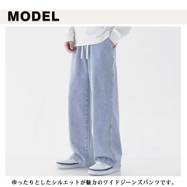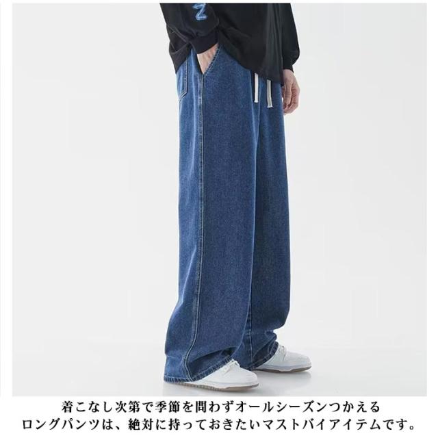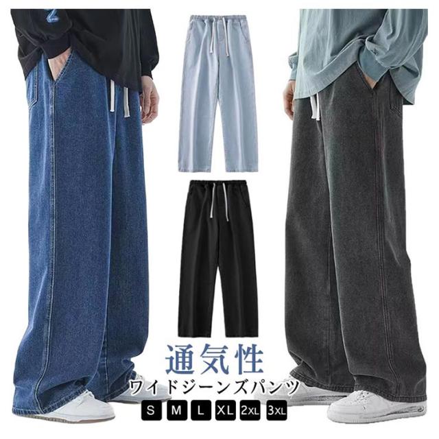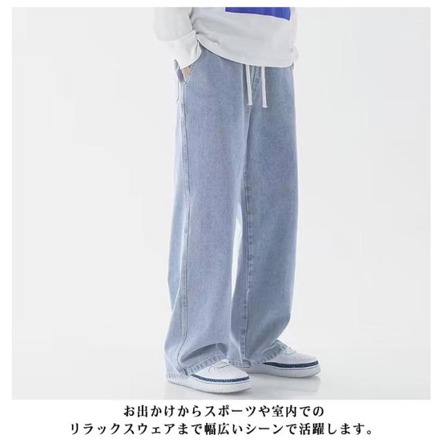 ジーンズ 薄手 ポッケト ロングパンツ ゆったり 長ズボン メンズ Gパン デニムパンツ メンズジーパン 通気性 ワイド ワイドパンツ ジーパン デニムワイドパンツ ストレート 無地 ワイドストレートパンツ カジュアル リラックスパンツ