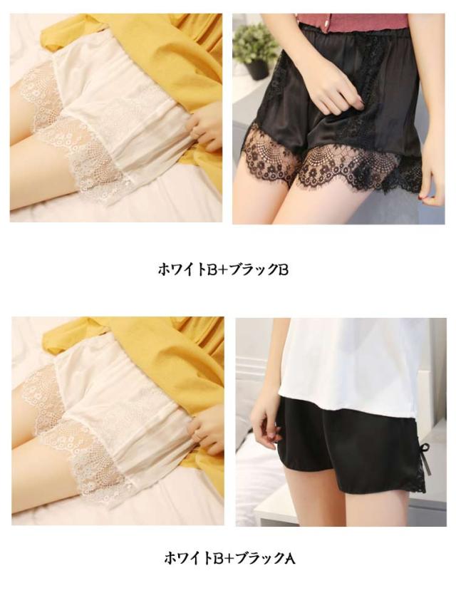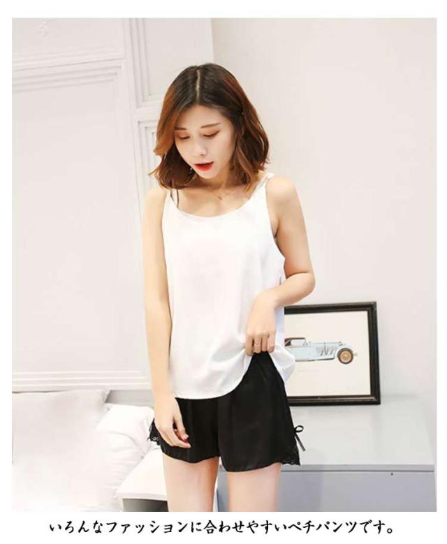ペチパンツ ペチパン レディース パンツ ショート丈 大きいサイズ レース 裾 スリップ 透け防止 インナー かわいい ペチパンツ 部屋着 キュロット ルームウェア パンツ 涼しい ウエストゴム インナーパンツ 秋 春 夏 透けない 2枚セット 夏 肌着 白 黒