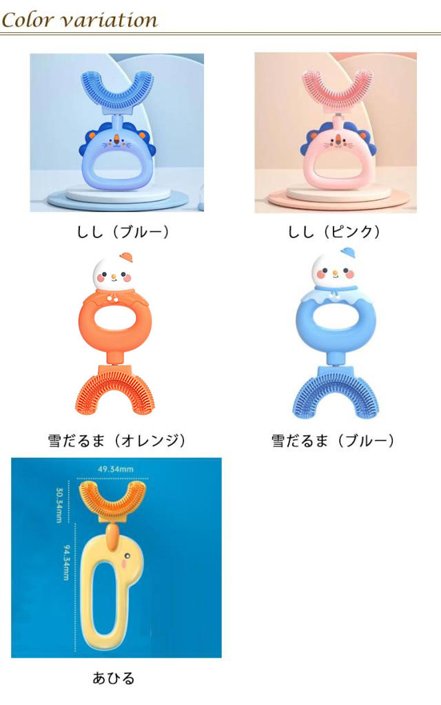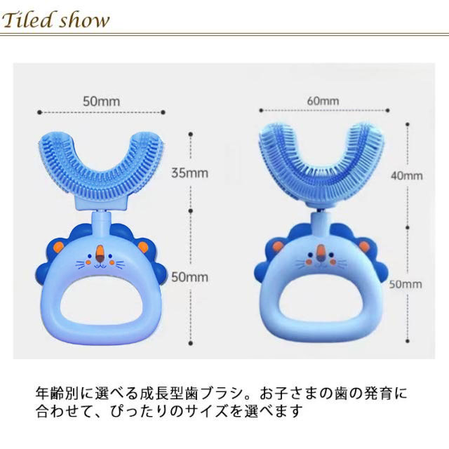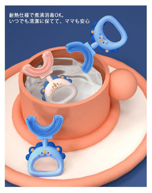 | 2〜6才/6〜12才 歯ブラシ U型 年齢別に選べる成長型歯ブラシ。お子さまの歯の発育に合わせて、ぴったりのサイズを選べます 振るだけ簡単、楽しく磨ける。左右に軽く振るだけでOK!小さなお子さまでもすぐに覚えられます U字型で時短&しっかり磨き。立体ブラシが歯を包み込み、すみずみまで同時に磨けます 食品グレードシリコン使用。やわらかくて安全、口に入れても安心。においも気になりません 耐熱仕様で煮沸消毒OK。いつでも清潔に保てて、ママも安心 持ちやすいリング型ハンドル。小さな手でも握りやすく、自分で使いたくなるデザイン | |