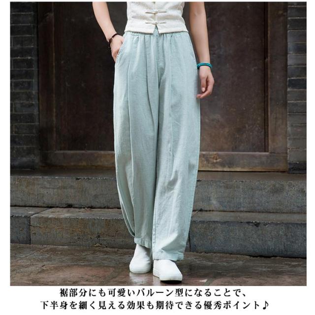 レディース バルーンパンツ リラックス ロング丈 ウエストゴム サルエル リラックスパンツ ロングパンツ ボトムス リネン バルーンパンツ 夏服 春夏 美脚 おしゃれ 着やせ 無地 ゆったり サルエルパンツ おしゃれ パンツ ナチュラル 30代 20代