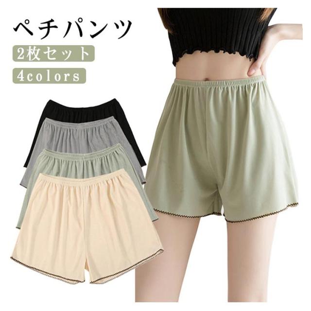 ペチパンツ シンプル 2枚セット インナーパンツ ペチコート 快適 インナーパンツ レディース ワンピース パンツ 下着 夏用 ショート ペチパン 通気性 薄手 スカート 春 夏 ウエストゴム 透け防止 透けない ルームウエア タップパンツ 2枚セット 蒸れない ドレス