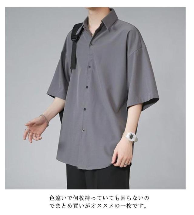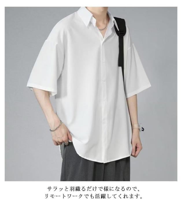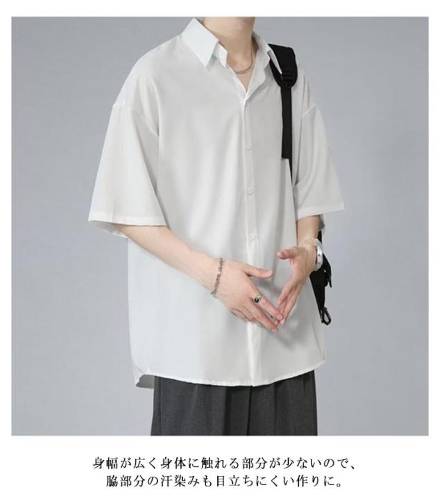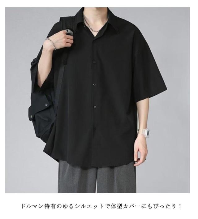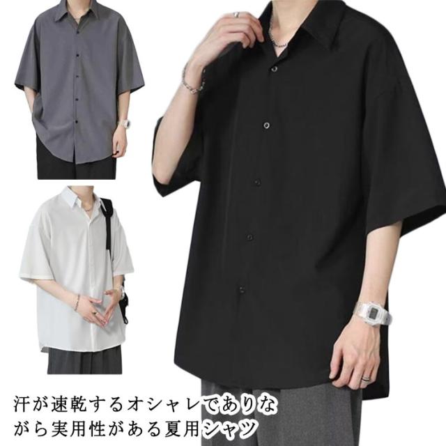 ビッグシルエット 冷感シャツ シャツ 涼しい メンズ 半袖シャツ 半袖シャツ 半袖 冷感 ひんやり オーバーサイズ シャツ シワにくい ドルマン 無地 オーバーサイズ 半袖シャツ ロングシャツ ビッグシャツ 接触冷感 ストリート 涼感