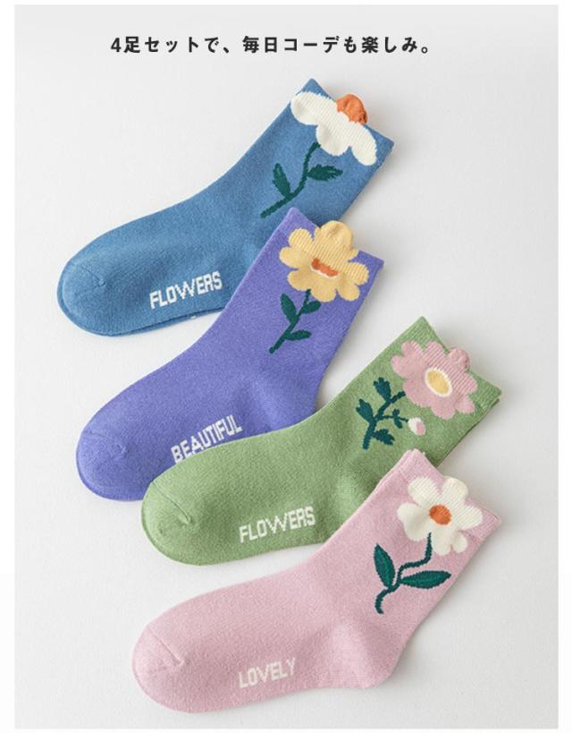 小学生 幼稚園 秋 ソックス 女の子 キッズ用 花柄 キッズ 送料無料 可愛い かわいい 4足セット 子供 春 冬 靴下 伸縮性 おしゃれ 通園 未就学 4足セット インスタ映え