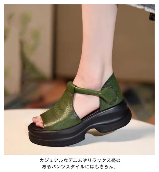 | 22.5cm〜25.0cm 足全体をすっぽりと包み込む厚底サンダル。 足元にボリュームをプラスするやや厚底のソールが特徴で、スタイルアップ効果も抜群。 素材は程よい艶感が美しく柔らかい上質なPUレザーを使用。 見た目の存在感がありながら、軽量な作りで歩きやすさにも配慮されています。 カジュアルなデニムやリラックス感のあるパンツスタイルにはもちろん、 ワンピースやスカートと合わせることで、程よく抜け感のある大人のスタイリングが完成します。 | |