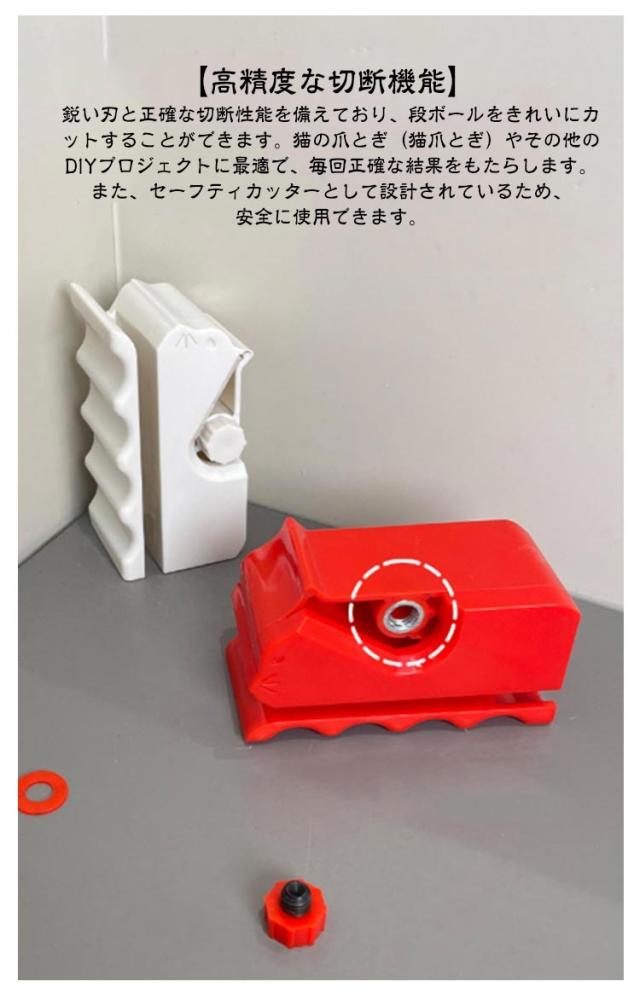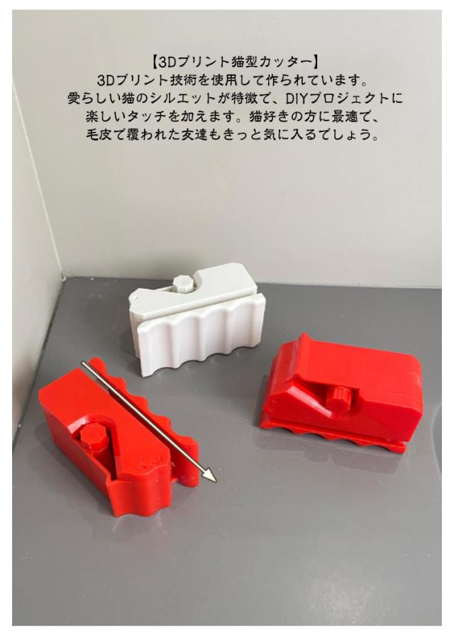 | DIY猫の爪研ぎ用段ボールカッター (刃付き) 2個セット 【猫の外観デザイン】家の装飾として、猫を愛する雰囲気を念頭に置いてデザインされた猫スクラッチャー用の創造的でかわいい段ボールカッターで、あなたの生活空間に暖かさと楽しさを加えてください。 【3Dプリント猫型カッター】3Dプリント技術を使用して作られています。愛らしい猫のシルエットが特徴で、DIYプロジェクトに楽しいタッチを加えます。猫好きの方に最適で、毛皮で覆われた友達もきっと気に入るでしょう。 【高精度な切断機能】鋭い刃と正確な切断性能を備えており、段ボールをきれいにカットすることができます。猫の爪とぎ(猫爪とぎ)やその他のDIYプロジェクトに最適で、毎回正確な結果をもたらします。また、セーフティカッターとして設計されているため、安全に使用できます。 【コンパクトで便利】保管や持ち運びが簡単です。熟練した職人にも初心者にも最適で、DIYプロジェクトやプロの使用における段ボールの切断ニーズをすべて満たします。安全ブレードガードが装備されており、誤って指を切るのを防ぎ、使用中に安心していただけます。 【幅広い用途】段ボールを再利用して、ユニークな手作りの猫用爪とぎポスト、ガーデンマット、堆肥材料、クリエイティブな手作りの猫用ベッド、キャットツリー、その他のペット用家具を作ることができます。 | |