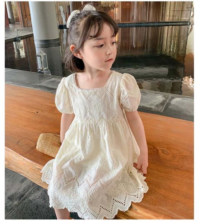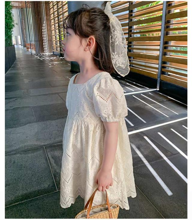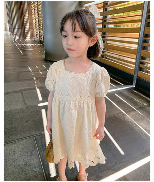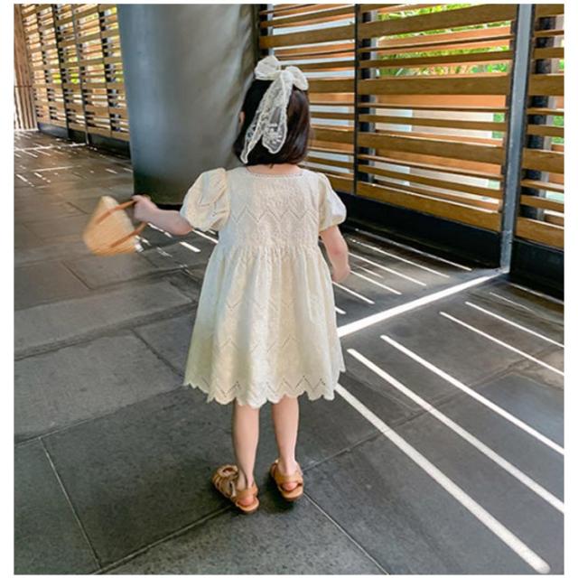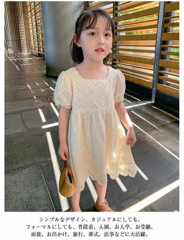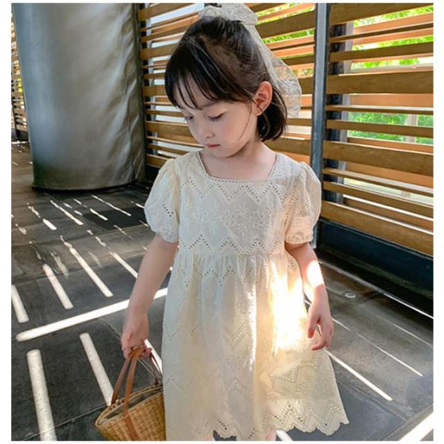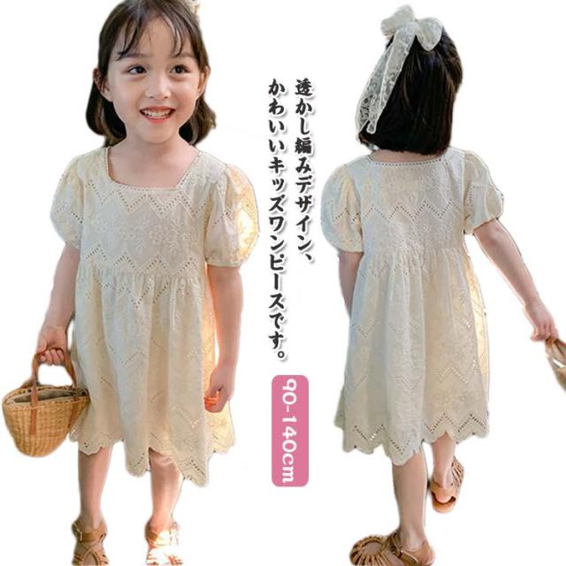 ワンピース 半袖 透かし編み キッズ 女の子 お揃い 子供 姉妹 子どもワンピース 透かし編み 100cm ベビー かわいい おしゃれ シンプル 韓国子供服 90cm お出かけ 110cm 120cm 130cm